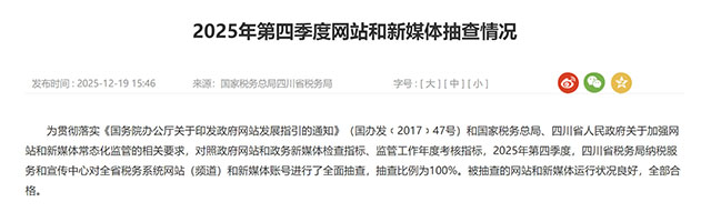 内容来源:国家税务总局四川省税务局/《2025年第四季度网站和新媒体抽查情况》