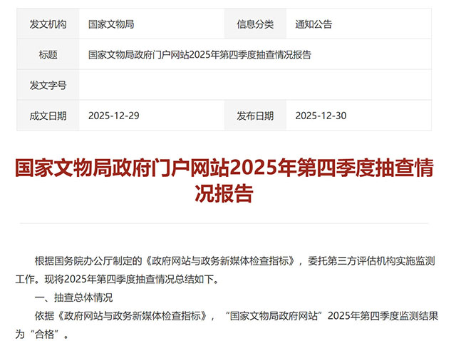 内容来源:国家文物局/《国家文物局政府门户网站2025年第四季度抽查情况报告》