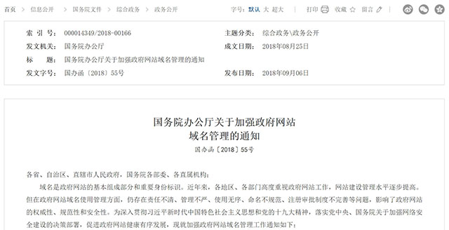 内容来源:《国务院办公厅关于加强政府网站域名管理的通知》
