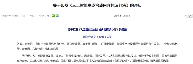 关于印发《人工智能生成合成内容标识办法》的通知