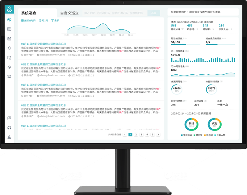 支持再文章发布前利用系统词库对错敏信息进行预判,避免错敏信息发布和传播,支持导出巡查报告文件。