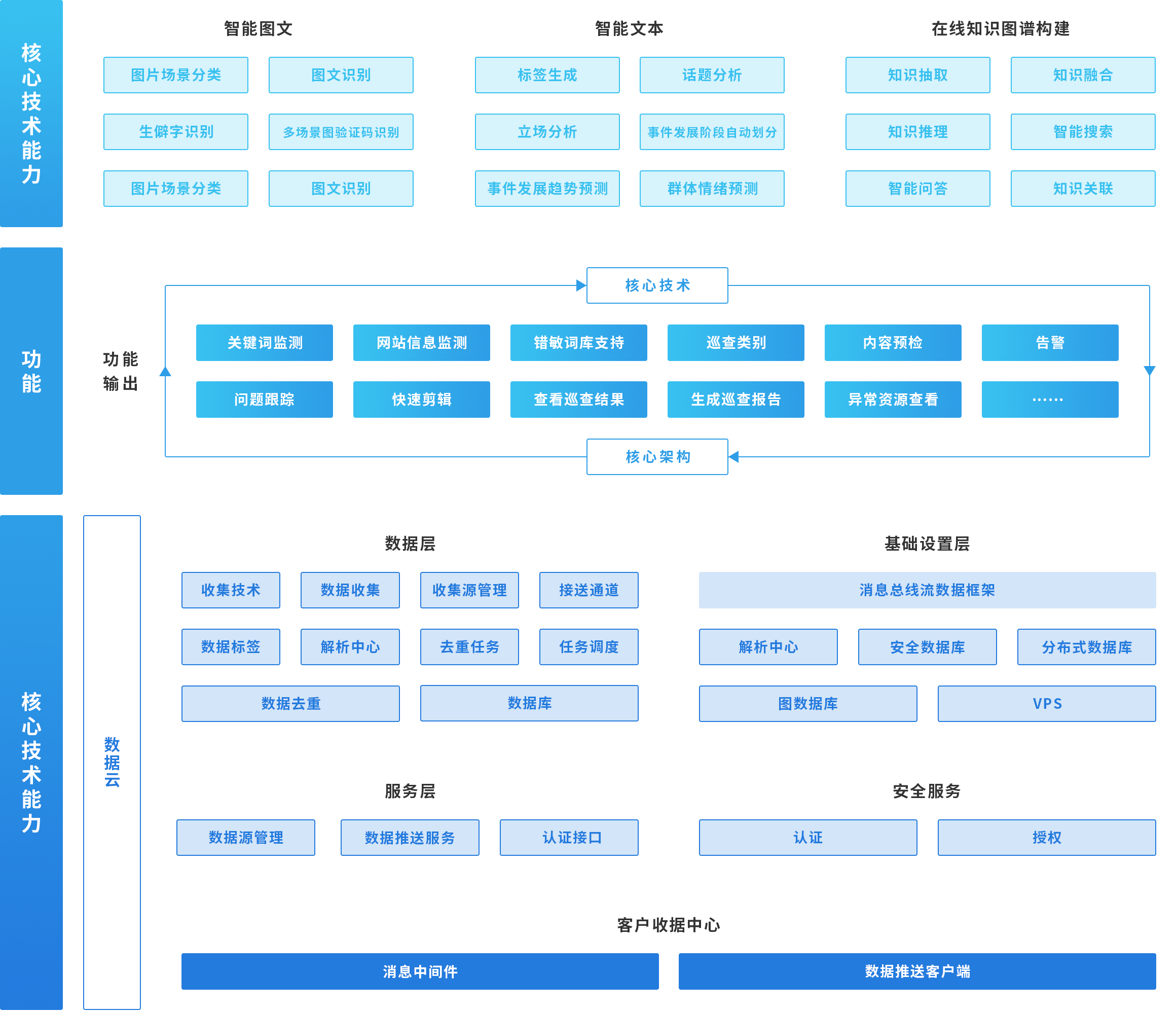 对监测列进行信息预警,采集到的信息包含预设的关键字时,系统第一时间通过微信、邮件或短信的方式预警。